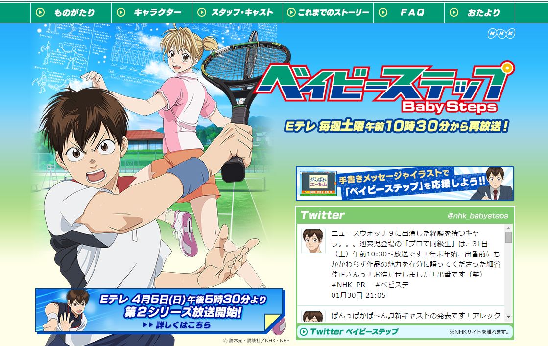 番組HP⇒ http://www9.nhk.or.jp/anime/babysteps/