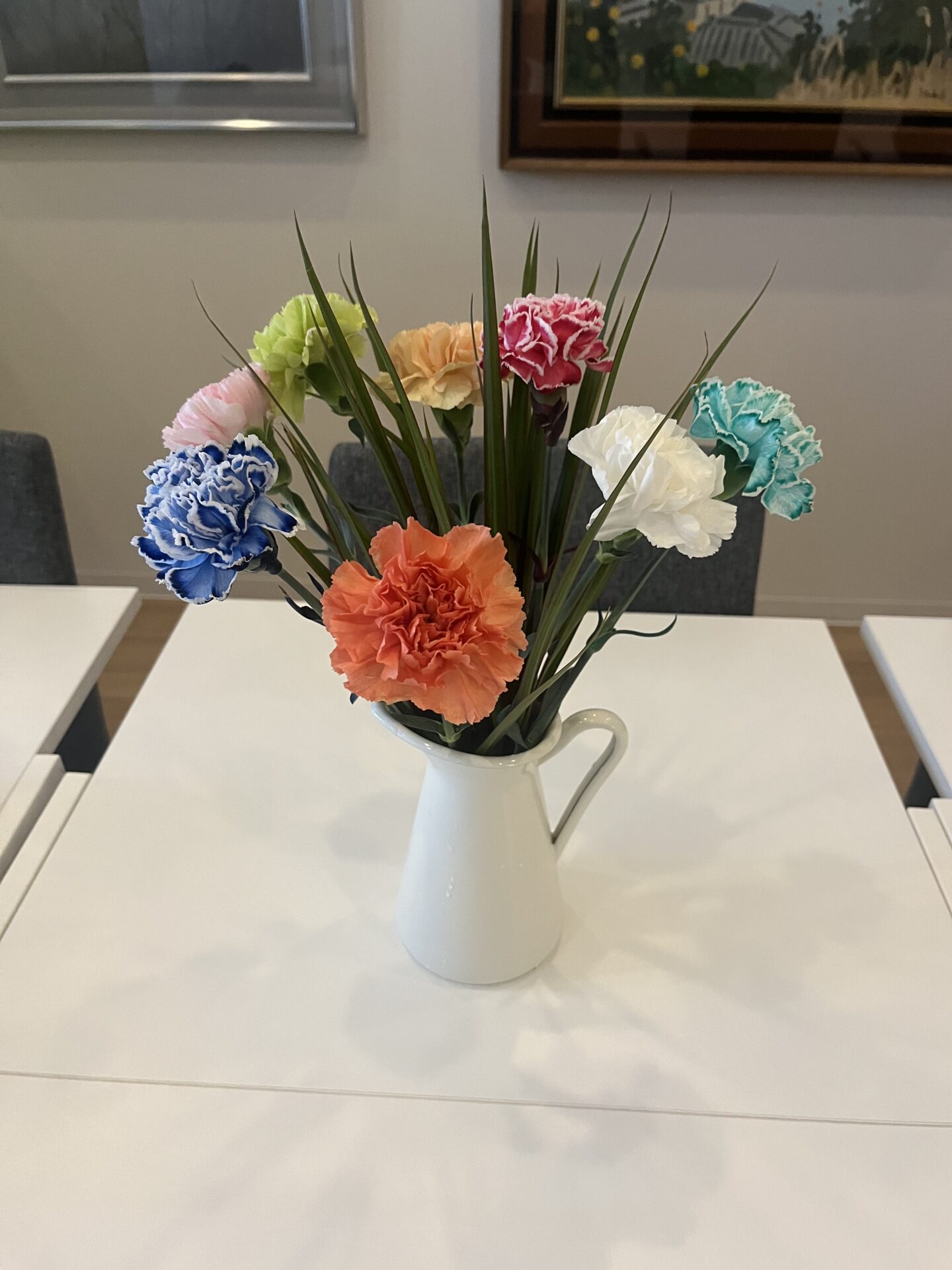 今週のお花は❝カーネーション(赤・青・ミント)❞ ❝ドラセナ❞ です。