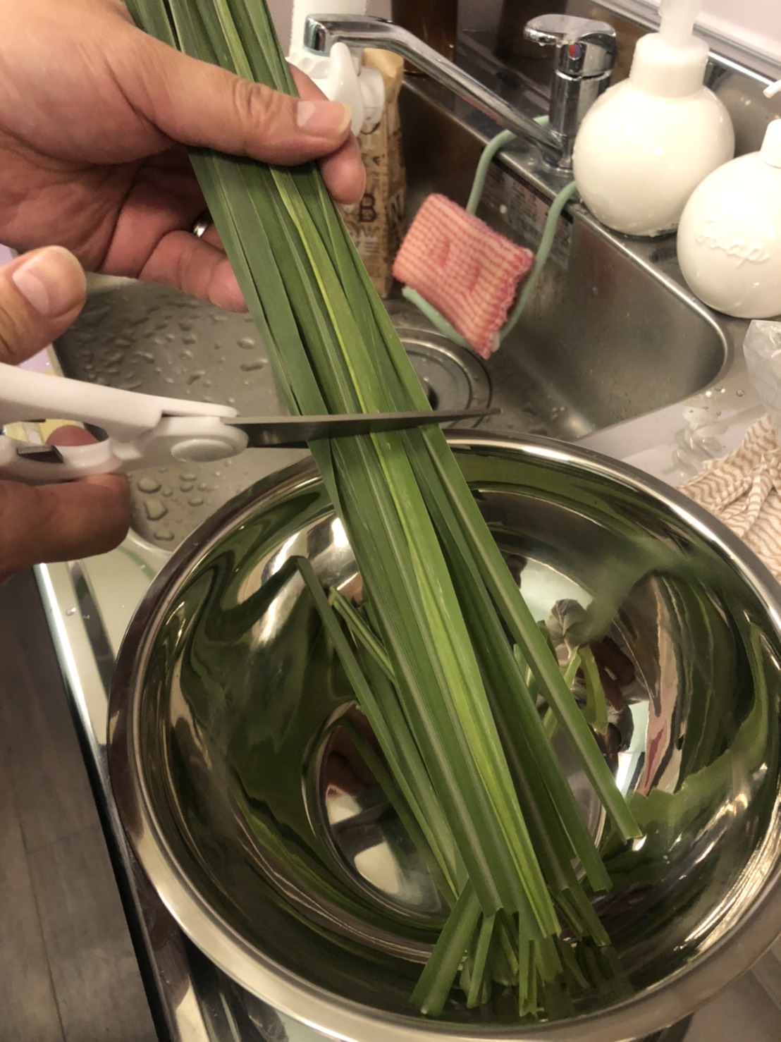 レモングラスを水で洗って、カット♪