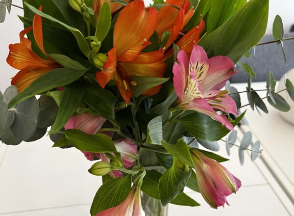 今週のお花は❝アルストロメリア❞ ❝ドラセナ❞ ❝ユーカリ❞ です。 鮮やかなオレンジとピンクのアルストロメ...